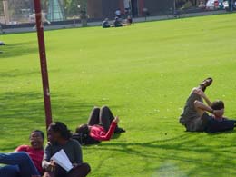 new 比利陀利亚位于约翰内斯堡北方,相距仅40分钟车程。这里是南非的政治决策中心兼行政首都,也是南非的交通枢纽,南半球空中交通必经之路。该市面积1,221,037平方公里,人口中70%为黑人,其余为白种人和混血种人 。官方语言为英语和南非荷兰语等,共有11种官方语言。宗教有基督教,穆斯林,印度教,犹太教和其它传统宗教。货币为兰特(与人民币基本1:1),这里比格林尼治时间早2个小时,比北京时间晚6个小时。 在主任的安排下,我们访问了南非首都比利陀利亚大学以及艺术设计学院。该大学的艺术学院是南非重要的设计艺术摇篮。美丽的校园和幽雅的学习环境给我们留下了美好印象。 | |||||||||||||||||||||||||||||||||||||||||||||||||